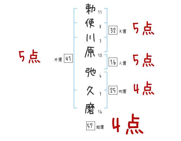 勅使川原弛久磨さんの画数の鑑定結果