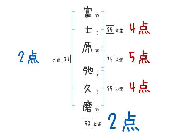 富士原弛久磨さんの画数の鑑定結果