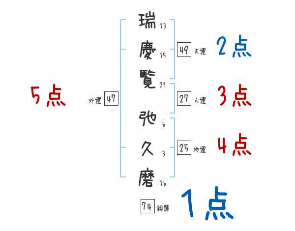 瑞慶覧弛久磨さんの画数の鑑定結果