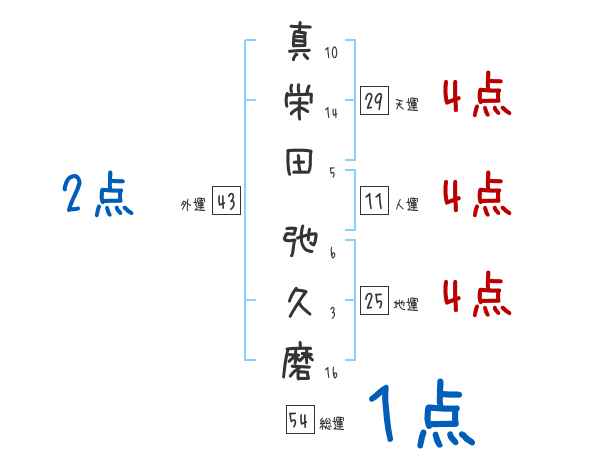 天運![]() | 真栄田弛久磨さんの天運は29画の4つ星!完全主義で才能がある。厳格な心の持ち主。 家系が持つ宿命的な運勢を表します。祖先から受け継いだ苗字ですので自分の力が及びません。家柄を象徴します。 |