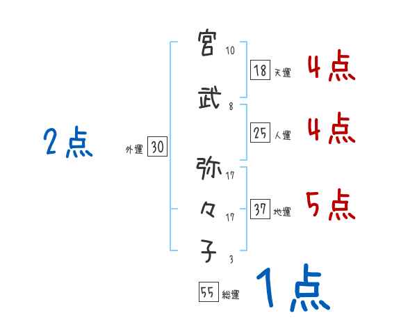 宮武弥々子さんの画数の鑑定結果