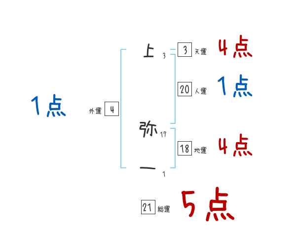 外運![]() | 上弥一さんの外運は4画の1つ星!感情が不安定で苦労するかも。周囲との協調を心掛けましょう。 生活面を象徴する運勢です。外部から受ける影響力を表し、結婚運、家庭運や職場、環境への順応性を表します。 |