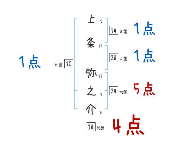 上条弥之介さんの画数の鑑定結果