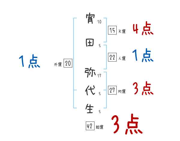 宵田弥代生さんの画数の鑑定結果