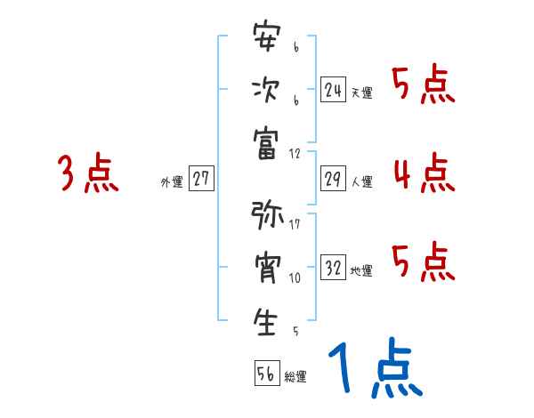 安次富弥宵生さんの画数の鑑定結果