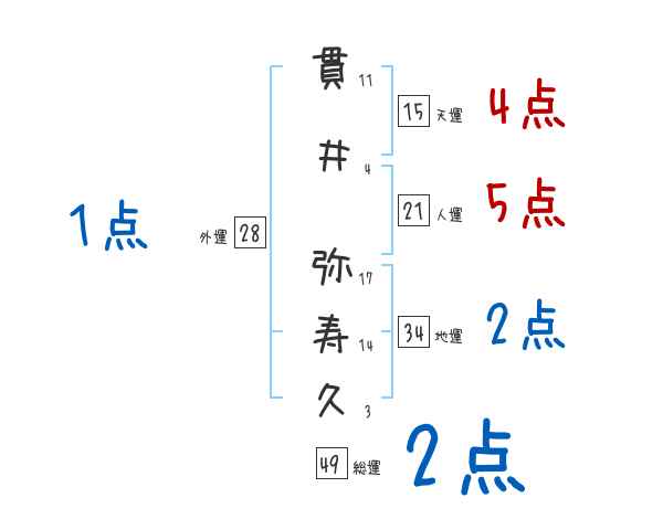 貫井弥寿久さんの画数の鑑定結果