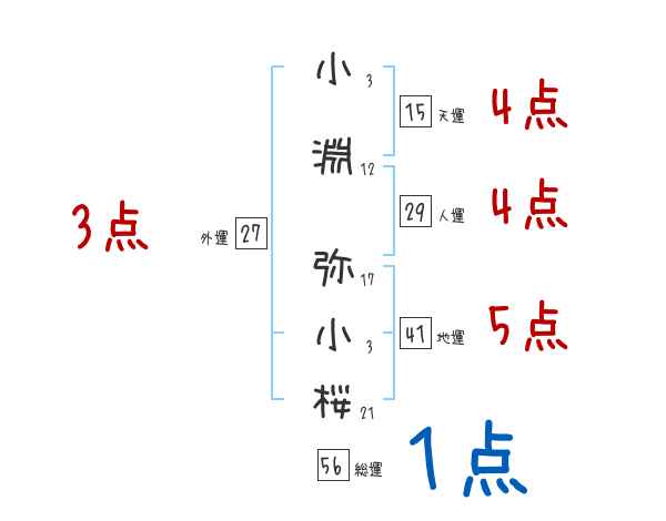 天運![]() | 小淵弥小桜さんの天運は15画の4つ星!人徳があり出世する。順調に物事を進め円満な人生。 家系が持つ宿命的な運勢を表します。祖先から受け継いだ苗字ですので自分の力が及びません。家柄を象徴します。 |