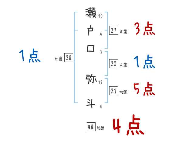 瀬戸口弥斗さんの画数の鑑定結果