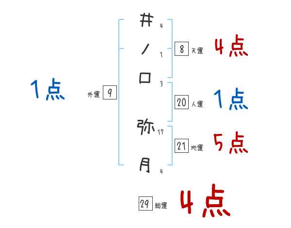 井ノ口弥月さんの画数の鑑定結果