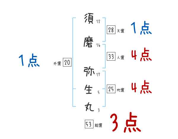 須磨弥生丸さんの画数の鑑定結果