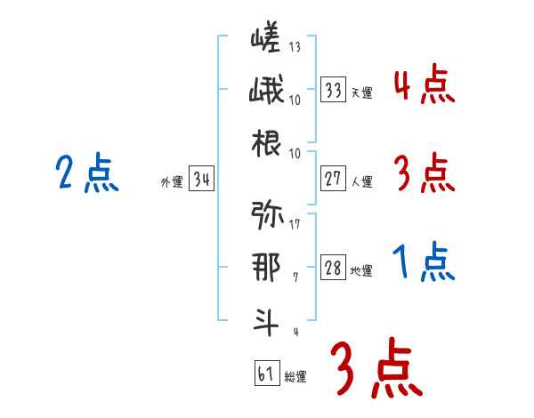 嵯峨根弥那斗さんの総運は61画の3つ星