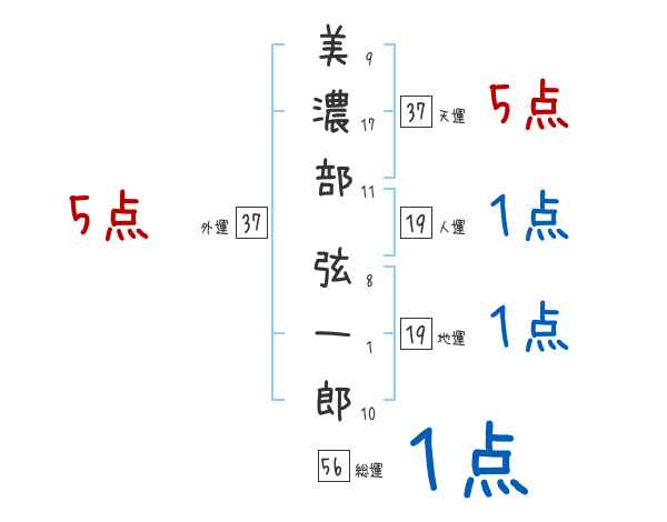 総運![]() | 美濃部弦一郎さんの総運は56画の1つ星!消極的で無気力になりがち。誠実な気持ちが必要でしょう。 あなたの人生を表す1番重要な運勢です。生涯を通じて影響する総合運となり、主に50歳以降の晩年期に影響を及ぼします。 |