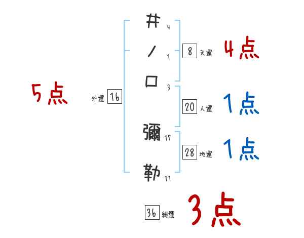井ノ口彌勒さんの画数の鑑定結果