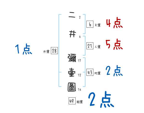 天運![]() | 二井彌壷圖さんの天運は6画の4つ星!慎重な努力家で信頼を得る。誠実な精神で向上心に優れる。 家系が持つ宿命的な運勢を表します。祖先から受け継いだ苗字ですので自分の力が及びません。家柄を象徴します。 |