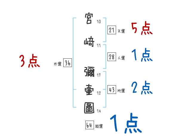 宮﨑彌壷圖さんの画数の鑑定結果