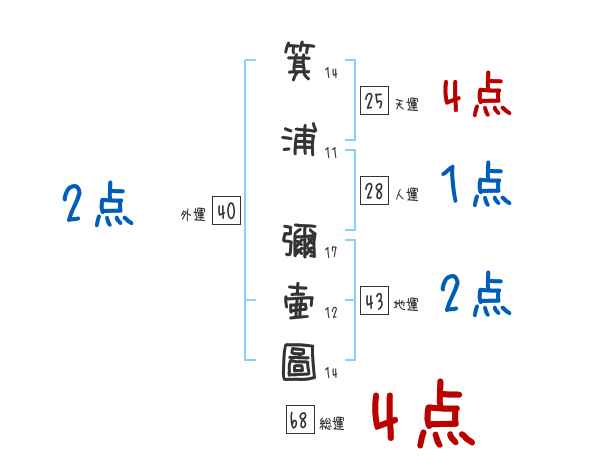 天運![]() | 箕浦彌壷圖さんの天運は25画の4つ星!個性があり才能があふれる。強運の持ち主で発展する。 家系が持つ宿命的な運勢を表します。祖先から受け継いだ苗字ですので自分の力が及びません。家柄を象徴します。 |