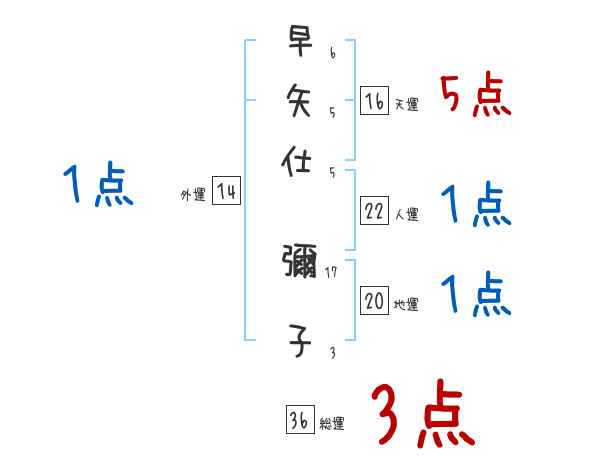 総運![]() | 早矢仕彌子さんの総運は36画の3つ星!先見性が豊かです。多少神経質で苦労することも。 あなたの人生を表す1番重要な運勢です。生涯を通じて影響する総合運となり、主に50歳以降の晩年期に影響を及ぼします。 |