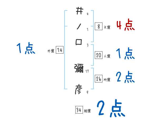天運![]() | 井ノ口彌彦さんの天運は8画の4つ星!勤勉家。根気強く努力し成功する。忍耐力がある。 家系が持つ宿命的な運勢を表します。祖先から受け継いだ苗字ですので自分の力が及びません。家柄を象徴します。 |
