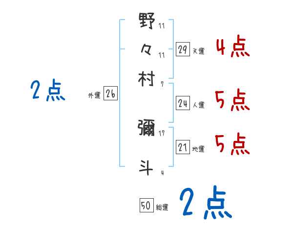 野々村彌斗さんの画数の鑑定結果