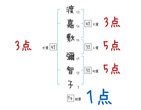 人運![]() | 渡嘉敷彌智子さんの人運は32画の5つ星!柔軟性があり成功する。チャンスが多く金運が良い。 性格や才能などを表す2番目に重要な運勢です。人間関係や協調性、社会的な成功に影響します。主に20歳から50歳ぐらいまでの中年期の運勢を表します。 |