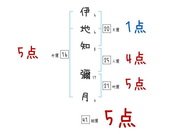 外運![]() | 伊地知彌月さんの外運は16画の5つ星!人望が厚く大きく発展する。逆転成功が見える。 生活面を象徴する運勢です。外部から受ける影響力を表し、結婚運、家庭運や職場、環境への順応性を表します。 |