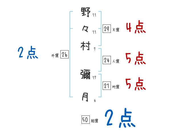 野々村彌月さんの画数の鑑定結果