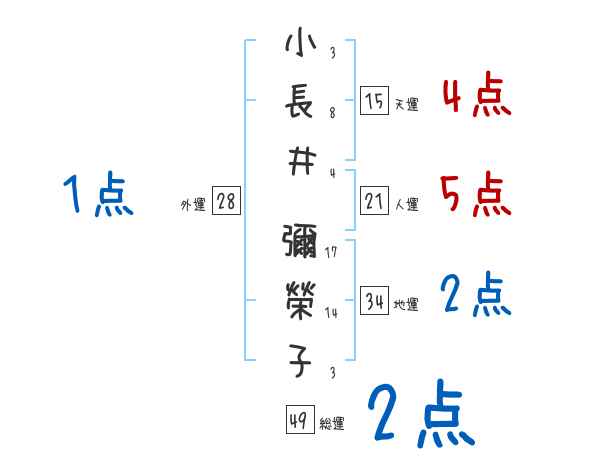 外運![]() | 小長井彌榮子さんの外運は28画の1つ星!家庭環境に注意。スポーツで活躍できる能力があるかも。 生活面を象徴する運勢です。外部から受ける影響力を表し、結婚運、家庭運や職場、環境への順応性を表します。 |