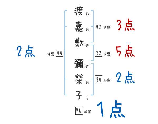 渡嘉敷彌榮子さんの画数の鑑定結果