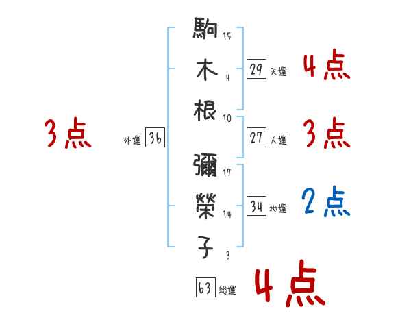 駒木根彌榮子さんの画数の鑑定結果