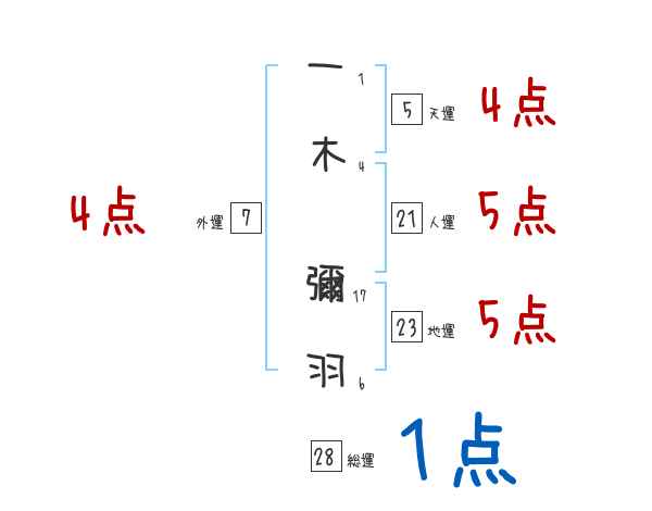 総運![]() | 一木彌羽さんの総運は28画の1つ星!家庭環境に注意。スポーツで活躍できる能力があるかも。 あなたの人生を表す1番重要な運勢です。生涯を通じて影響する総合運となり、主に50歳以降の晩年期に影響を及ぼします。 |