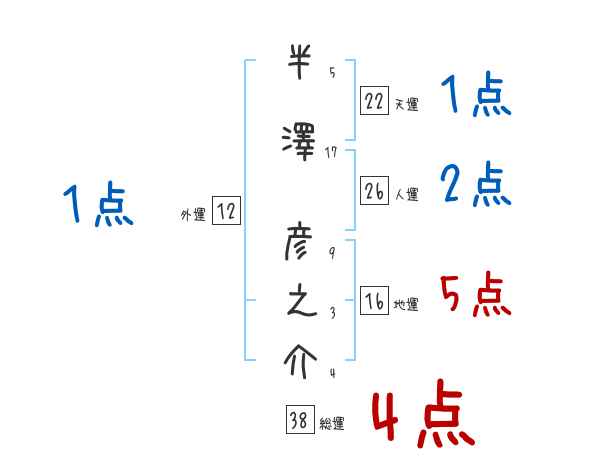 天運![]() | 半澤彦之介さんの天運は22画の1つ星!努力することが苦手ないっぽう手先が器用。芸術性にも優れる。 家系が持つ宿命的な運勢を表します。祖先から受け継いだ苗字ですので自分の力が及びません。家柄を象徴します。 |
