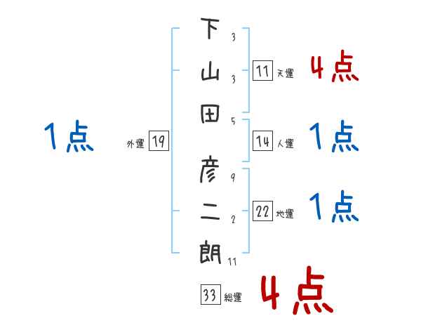 下山田彦二朗さんの画数の鑑定結果