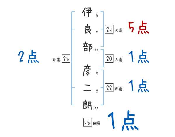 伊良部彦二朗さんの画数の鑑定結果
