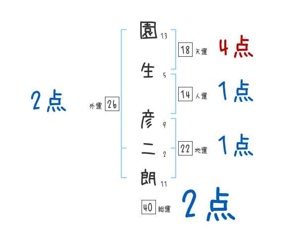 園生彦二朗さんの画数の鑑定結果