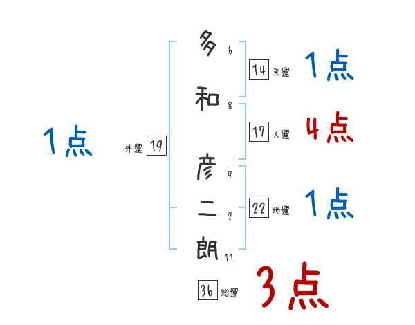 総運![]() | 多和彦二朗さんの総運は36画の3つ星!先見性が豊かです。多少神経質で苦労することも。 あなたの人生を表す1番重要な運勢です。生涯を通じて影響する総合運となり、主に50歳以降の晩年期に影響を及ぼします。 |