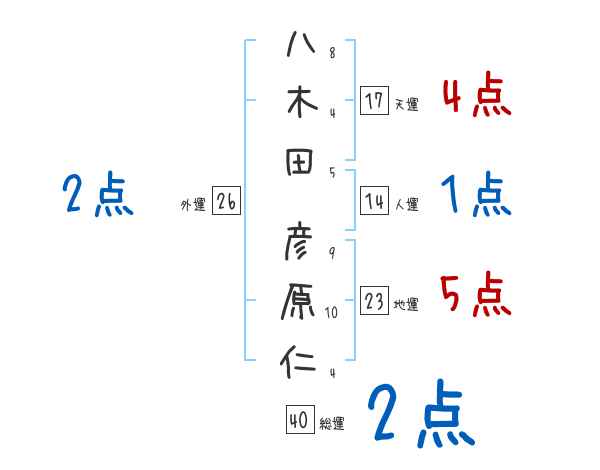 八木田彦原仁さんの画数の鑑定結果