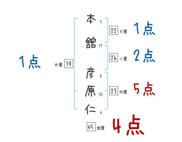 本舘彦原仁さんの画数の鑑定結果