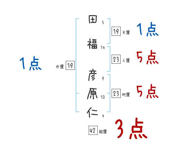 総運![]() | 田福彦原仁さんの総運は42画の3つ星!病気に注意。多芸であるが消極的でおとなしい。 あなたの人生を表す1番重要な運勢です。生涯を通じて影響する総合運となり、主に50歳以降の晩年期に影響を及ぼします。 |