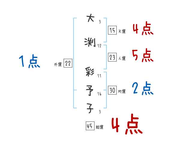 人運![]() | 大渕彩予子さんの人運は23画の5つ星!想像力に優れ活力がある。一代で成功し名誉を手に入れる。 性格や才能などを表す2番目に重要な運勢です。人間関係や協調性、社会的な成功に影響します。主に20歳から50歳ぐらいまでの中年期の運勢を表します。 |