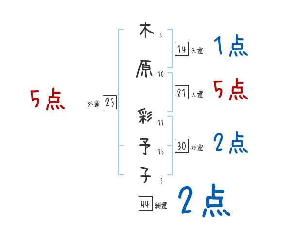 木原彩予子さんの画数の鑑定結果