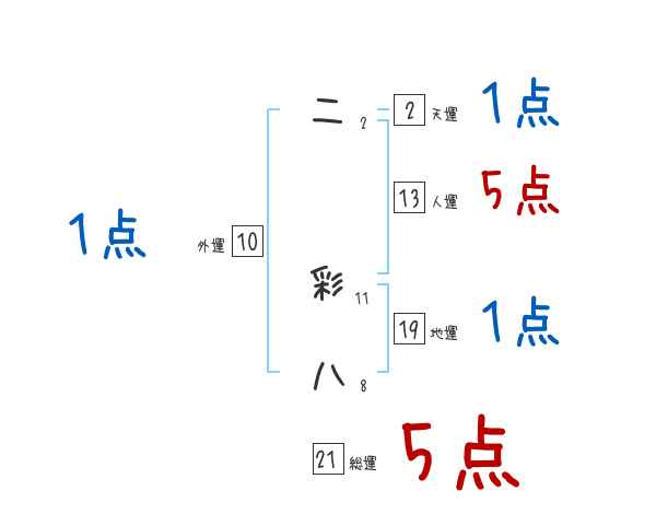 二彩八さんの画数の鑑定結果
