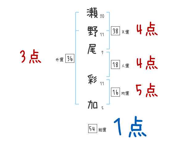 瀬野尾彩加さんの画数の鑑定結果