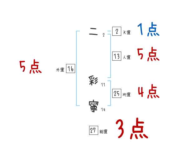 二彩寧さんの画数の鑑定結果