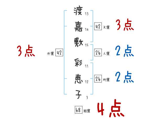 渡嘉敷彩恵子さんの画数の鑑定結果