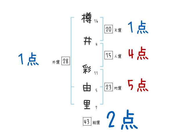 外運![]() | 樽井彩由里さんの外運は28画の1つ星!家庭環境に注意。スポーツで活躍できる能力があるかも。 生活面を象徴する運勢です。外部から受ける影響力を表し、結婚運、家庭運や職場、環境への順応性を表します。 |