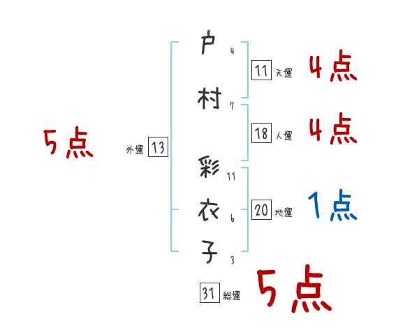 天運![]() | 戸村彩衣子さんの天運は11画の4つ星!着実に富や地位を得る幸運な人生。 家系が持つ宿命的な運勢を表します。祖先から受け継いだ苗字ですので自分の力が及びません。家柄を象徴します。 |
