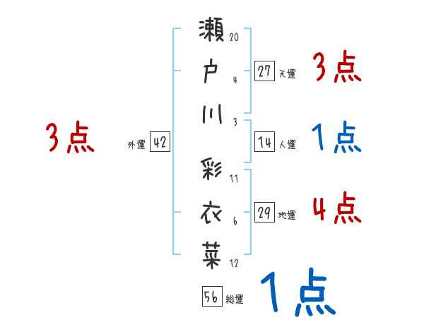 瀬戸川彩衣菜さんの画数の鑑定結果