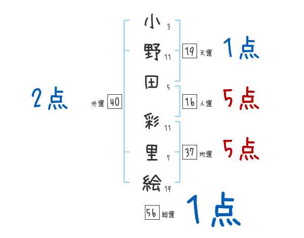 小野田彩里絵さんの画数の鑑定結果