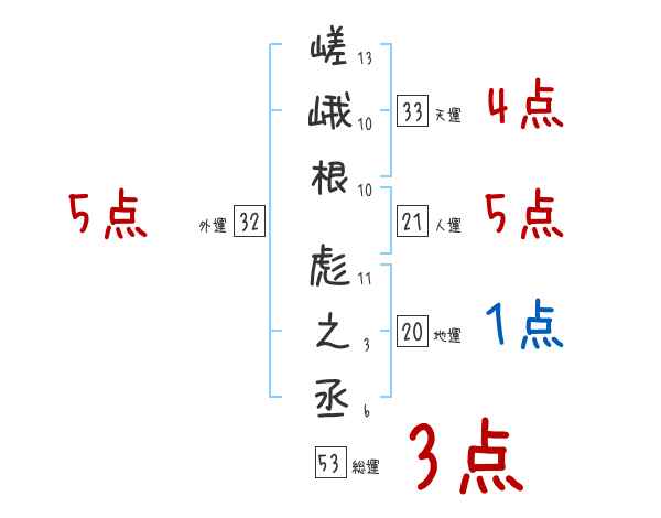 嵯峨根彪之丞さんの総運は53画の3つ星