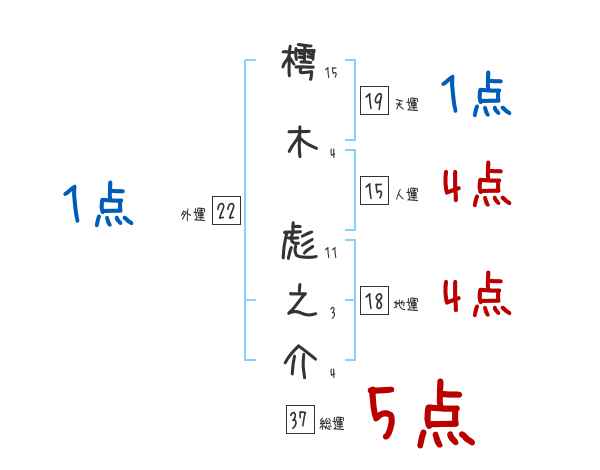 外運![]() | 樗木彪之介さんの外運は22画の1つ星!努力することが苦手ないっぽう手先が器用。芸術性にも優れる。 生活面を象徴する運勢です。外部から受ける影響力を表し、結婚運、家庭運や職場、環境への順応性を表します。 |